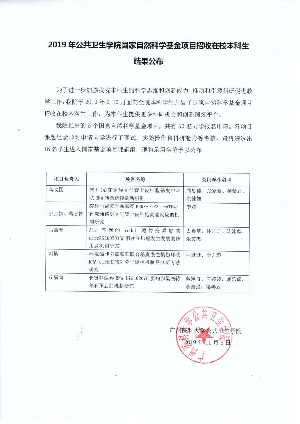 2019年性吧 国家自然科学基金项目招收在校本科生结果公布