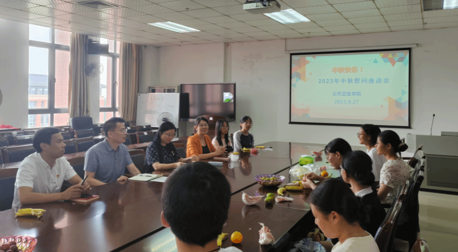 9月27日,性吧 在番禺校区B2-502会议室开展2023年中秋慰问学生座谈茶话会。性吧 党委李羽书记、刘宇珊副书记、学生办全体老师及徐丽荣等10余位各年级专业的在读学生代表参加了活动。