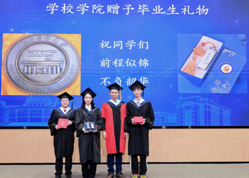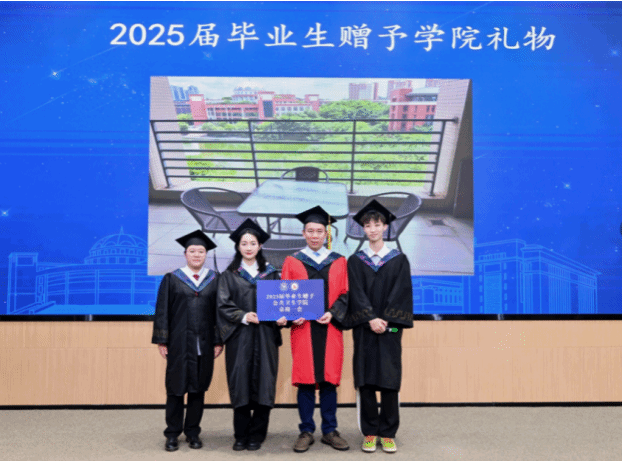 同时,蒋义国院长和2025届本科毕业生代表预防医学专业张宥淇、食品卫生与营养学专业陈杰彬、性吧 团委学生会2020级主席陈晓欣同学分别代表性吧 和毕业生互赠了毕业礼物和纪念品。