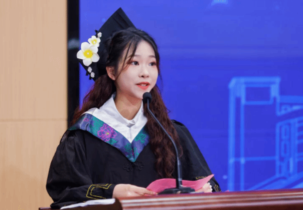 本科毕业生代表周家钰在发言中向辛勤付出的老师表达感谢,用“等风来不如追风去”与同学们共勉,鼓励大家主动追逐机遇,迎着时代奔跑,未来成为“造风者”,以广医精神为帆,公卫使命为桨,奔赴人生新征程。