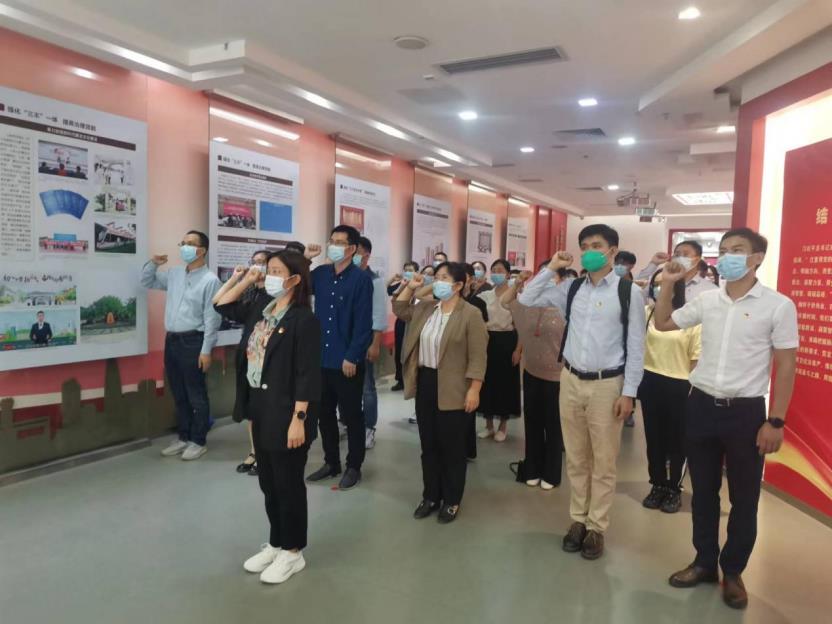 参观结束后,由总支副书记刘宇珊领誓,性吧 党员在育廉馆内党旗前重温入党誓词。