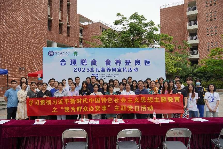 5月16日中午,全民营养周活动启动仪式暨主题教育之“我为群众办实事”主题党日活动在番禺校区举行。学校党委书记唐小平,副校长胡丙杰、周麟,性吧 、后勤校产管理处、工会负责人出席,性吧 教工第二党支部、学生第一党支部、学生第二党支部的党员、入党积极分子作为工作人员参与了活动。现场的营养健康咨询、营养测试、营养健康知识问答等活动吸引了超过500名师生参加。