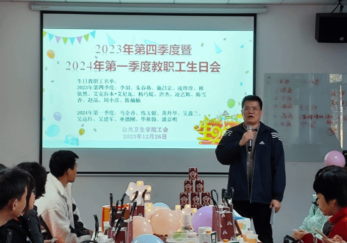12月26日下午,性吧 工会在番禺校区举办2023年第四季度暨2024年第一季度教职工集体生日会,性吧 党委书记、工会主席李羽及性吧 党委副书记、工会副主席刘宇珊携40余位教职员工参加活动。