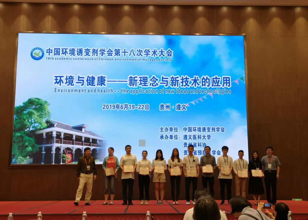 2019年6月19-22日在贵州遵义召开的中国环境诱变剂学会第十八次学术大会上,性吧 博士研究生周汉宇在分会场作了题为“circRNA 100146靶向miR-361-3p和miR-615-5p在苯并芘恶转细胞株中的功能与机制研究”的口头报告,硕士研究生李美珍作了“LncRNA L20992抑制铅致神经细胞损伤中的作用机制”的口头报告。周汉宇博士的报告论文荣获大会青年优秀论文奖。本次会议由中国环境诱变剂学会主办,会议主题是“环境与健康-新理念和新技术的应用”,有来自全国近500名专家学者参加了会议。