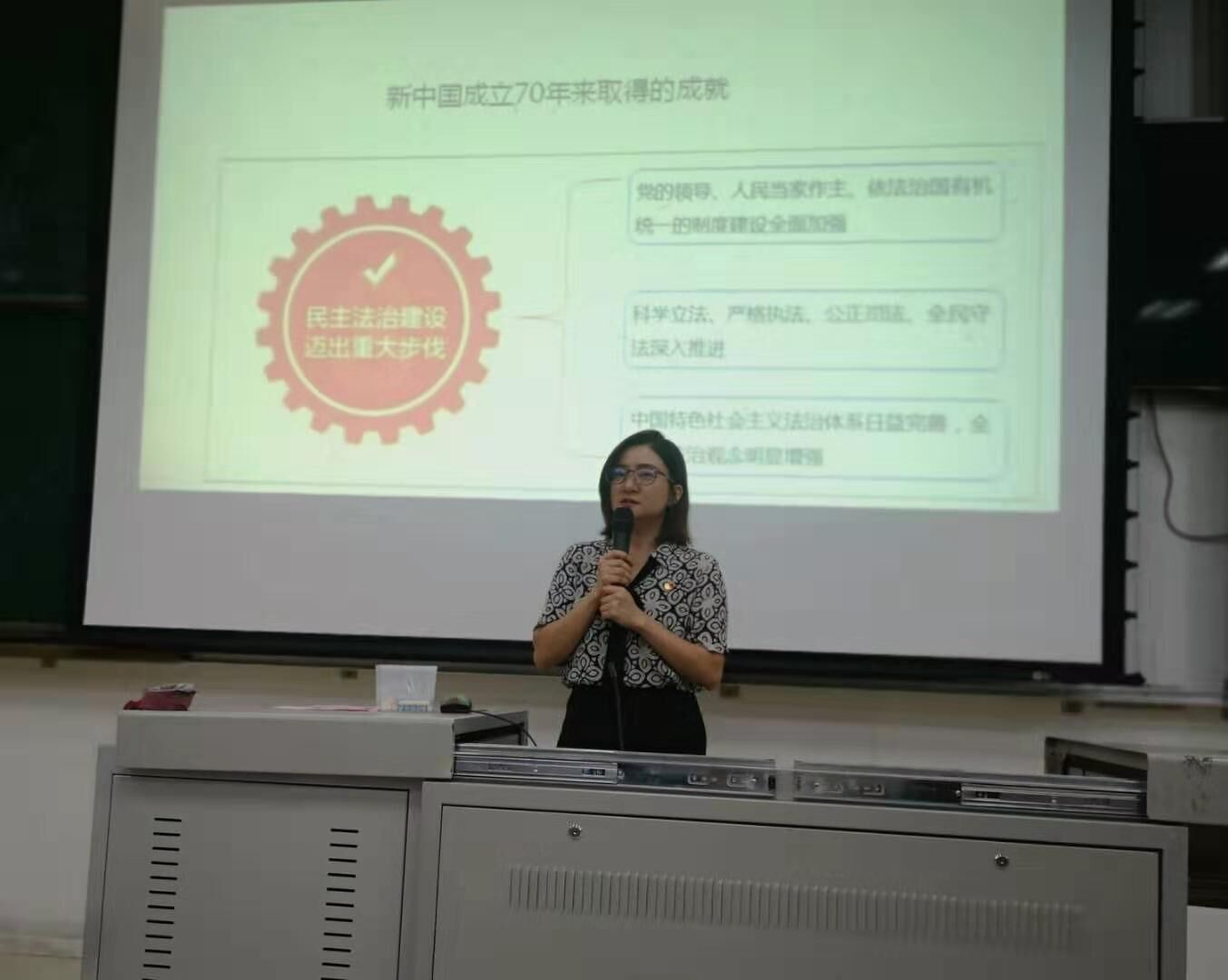 9月28日晚,性吧 党总支副书记刘宇珊在番禺校区B1栋楼101教室,为2019级全体新生、学生党员及入党积极分子上了2019年秋季学期思政第一课。