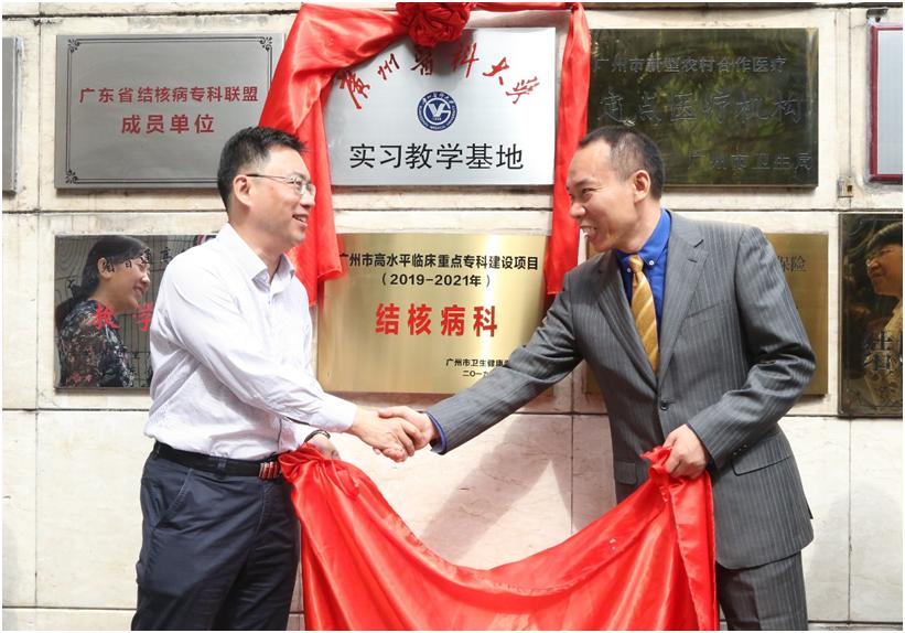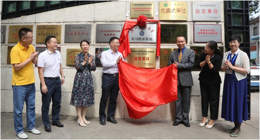 2019年11月12日上午,性吧 与广州市胸科医院在胸科医院举行了预防医学系“实习教学基地”揭牌仪式。广州市卫健委科教处刘华玲处长,性吧 蒋义国院长、杨巧媛副院长、学生办何少群主任与预防医学系及院教学办教师一行5人,以及胸科医院刘建雄院长、张言斌副书记、李铁刚副院长、李昕洁副院长及相关科室负责人出席了揭牌仪式。