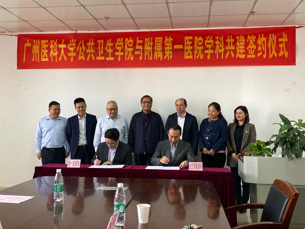 2020年1月9日上午,在番禺校区性吧 会议室,举行了性吧 与附属第一医院“学科共建”合作续签仪式。刘金保副校长,科研处付晓东处长,附一院黎毅敏书记、黄锦坤院长、高兴成副院长等,公卫性吧 蒋义国院长、杨巧媛副院长、党总支刘宇珊副书记,及公卫性吧 全体人员出席了签约仪式。这是公卫性吧 与附一院继2017年签署两院合作协议之后的第二次牵手。