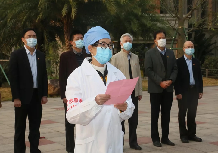 2月1日清晨,性吧 防控新型冠状病毒感染学生志愿服务队出征仪式在番禺校区礼堂前举行。学校党委书记冉丕鑫,校长王新华,副校长赵醒村,学生工作部、团委等单位负责人与志愿者代表出席仪式,性吧 蒋义国院长、预防医学系凌艺辉老师、学生办何少群老师作为性吧 指导老师代表参加了出征仪式。