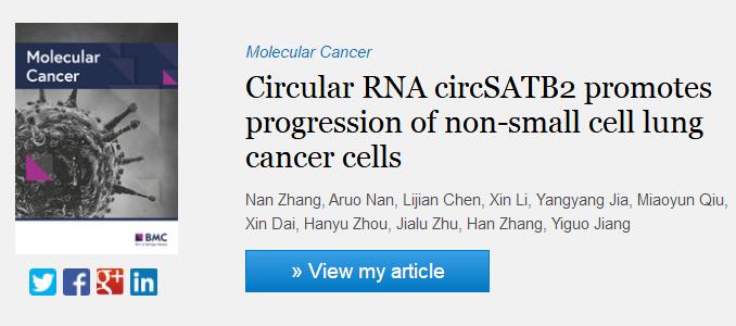 该研究对肺癌发展过程中外泌体环状RNA circSATB2功能及机制进行了深入探索。系列研究结果表明,环状RNA circSATB2可通过外泌体途径参与细胞间交流,引起受体细胞功能改变,从而促进肺癌发展;研究还发现外泌体circSATB2表达水平与肺癌淋巴转移有关。该项研究首次揭示了外泌体环状RNA在肺癌发生发展中的功能及其机制,丰富了肺癌病因学的基础理论,为肺癌的早期诊断和治疗以及环境致癌物暴露损伤的检测提供了新的分子靶点和标志物。