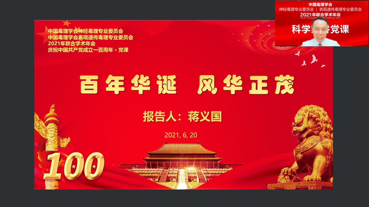 会议主席,性吧 蒋义国教授,在会议期间为两个专业委员会委员和参会的中共党员作了题为“庆祝中国共产党成立100周年----百年华诞,风华正茂”的“科学家讲党课”报告。20日晚上,还召开了专业委员会会议。表观遗传毒理专业委员会秘书长,性吧 吴建军教授,和新当选的副秘书长周芸教授,分别主持和发言。专委会主任委员蒋义国教授,就学会如何更好为会员和委员做好学术指导和服务,作了引导性讲话。