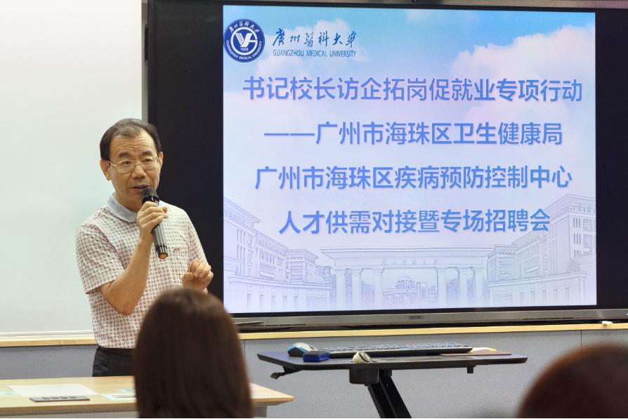 学校胡丙杰副校长、学生工作处陈伟民处长,以及性吧 蒋义国院长、刘宇珊副书记和科研与研究生管理办公室负责人黄老师出席了会议。招聘单位海珠区卫生健康局周瑞坚副局长、人事科负责人,以及海珠区疾病预防控制中心副主任刘达雄、刘凯星等领导参加了此次人才交流与招聘会。会议由蒋义国院长主持。