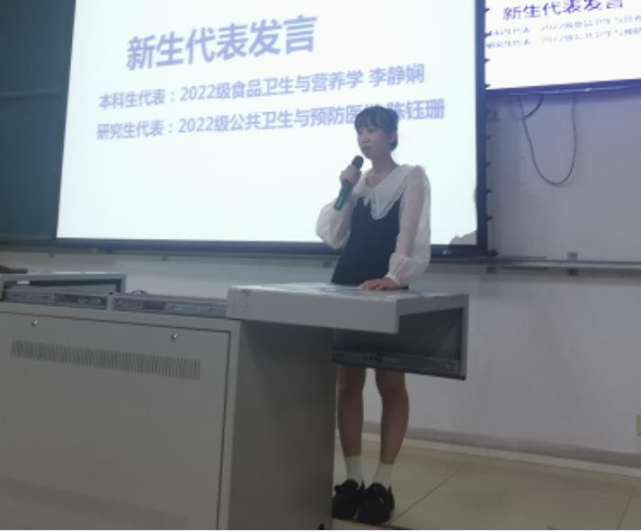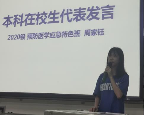 本科新生李静娴、研究生新生陈钰珊作为新生代表发言,她们对性吧 老师及同学们的热情欢迎表示衷心地感谢,并倡议全体新生奋发搏击、争取未来以优异的成绩回报性吧 的期待和厚爱。2020级预防医学专业周家钰同学代表在校学生发言,她分享了自身在校两年多的成长经验和心路历程,鼓励新生们在美好的广医校园留下自己的奋斗足印,刻苦学习、立志成才。